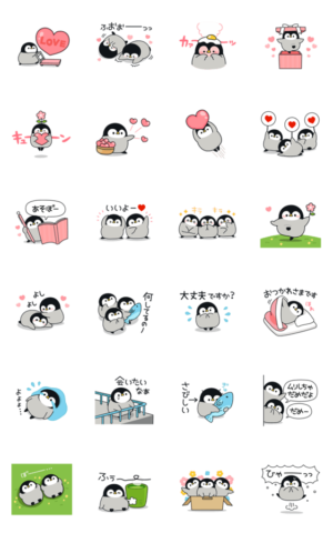 恋人や家族や友人に!やさしく気づかいのできるペンギンの赤ちゃんたちのラブラブなアニメーションスタンプです♪