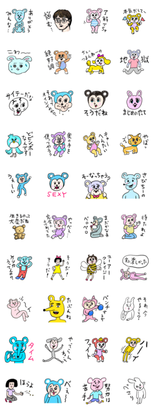 イッレ・コスヤの病んでるシュールなレトロ風スタンプです。ムチムチかわいいロンパースや幼児体型キャラがいっぱいです。バブーイッレ・コスヤ より発売