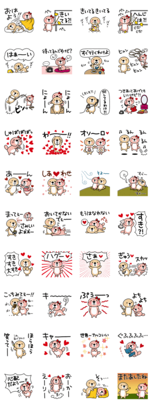 「突撃!ラッコさん」の番外編、ラッコさんとラッ子ちゃんのラブラブスタンプです。カップル、お友達、ご家族で楽しめます。バレンタインやイベントにも使ってね!
