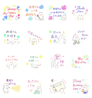 母の日に送りたい言葉をスタンプにしました。普段の生活でも使える内容も入っています。のん より発売