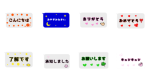 吹き出しLINEスタンプoO よく使う普通の日常会話(こんにちは・おやすみなさい・ありがとう・おめでとう・了解です・承知しました・お願いします・キュンキュン)