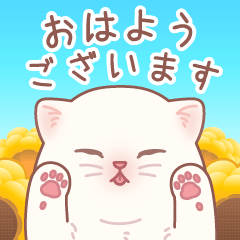 可愛いお花と白いブリティッシュショートヘアーの子猫が飛び出すスタンプです♪敬語で毎日誰にでも使えます。DECOR より発売
