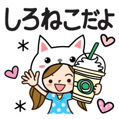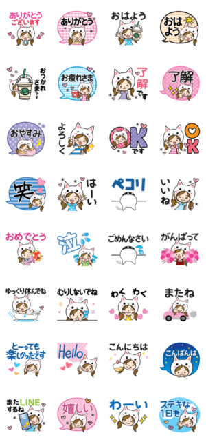 しろねこのかぶり物した大人かわいい女子の毎日使えるスタンプ♪親切で丁寧な言葉♪ KEN graphicKEN グラフィック より発売