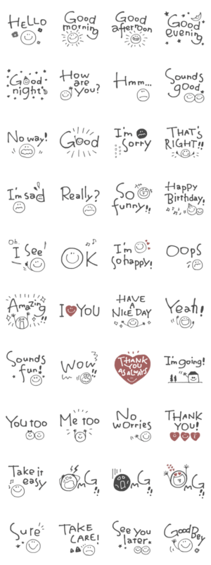 おしゃかわシンプル!ゆる文字英語スタンプ スタンプ画像一覧