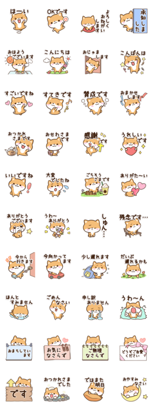 ちいさい柴犬の可愛い豆柴です。毎日よく使う言葉やあいさつの、かわいいイヌスタンプ。しばいぬ好きの方コーギーや秋田犬等、茶色い犬を飼っている方にぜひ。【かたこ】かたこ より発売