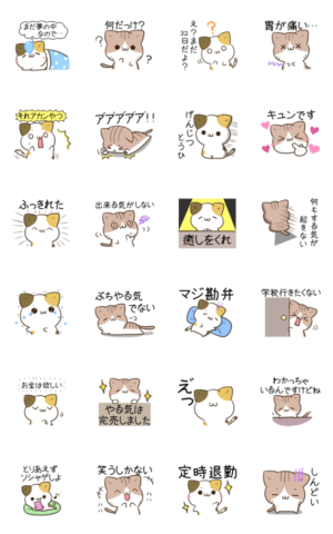 お疲れ気味 やる気が出ない時に使えるゆるかわ三毛猫とキジトラ白猫のアニメーションスタンプ第2弾 仕事 締め切り 進捗 社畜 学校 体調不良 春夏秋冬 ソシャゲ