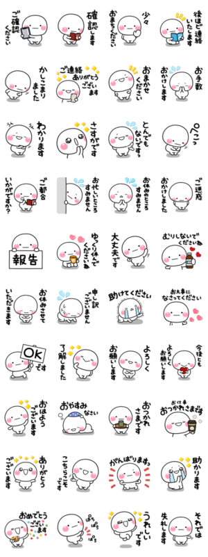それほど硬くない仕事用の連絡に使えるスタンプを探してました。これシンプルでそれでいて必要な言葉が入ってるので、お気に入りです。