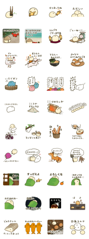 シンプルなキャラクターのわりとシュールなスタンプ。長く続いているシリーズもののためか汎用性より意外性のあるスタンプが多め。好きな人は好きそう。AA的なかわいさがある。