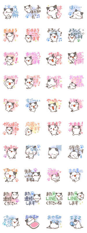 『ちびブチ』の【絵文字】と【着せかえ】もあります!ぶちネコが、色鉛筆の文字でやさしく返事をします。毎日便利な白黒猫スタンプ。ねこ好きな方にぜひ。【かたこ】かたこ より発売