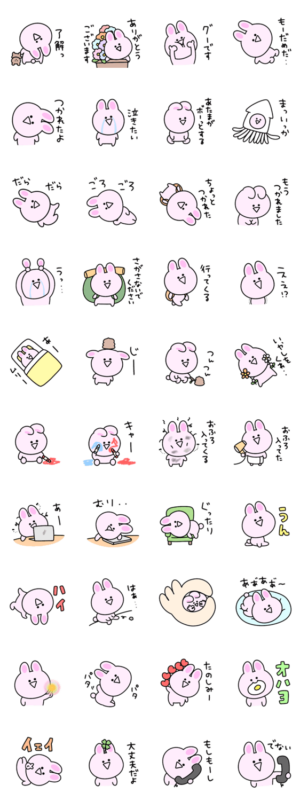 ちょっと疲れたシュールなミニうさぎのスタンプです。eribo より発売