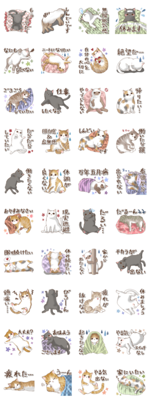 無気力な癒しの猫スタンプのダウンロードはこちら↓