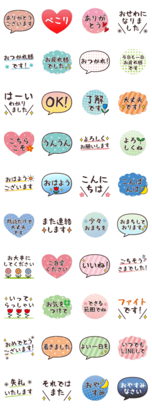 よく使うことば・表現を集めた、大人可愛い、シンプルなスタンプです。HRYs より発売