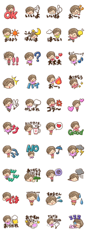 『おばあちゃんスタンプ』の『絵文字』と『着せかえ』もあります。シンプルで使いやすい気持ちや文字の、ばあばスタンプ。お母さんへのプレゼントとしてもぜひ。【かたこ】