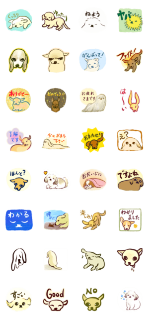 ぐったりとした白い犬が寝ています。やる気のない時に使うスタンプです。
