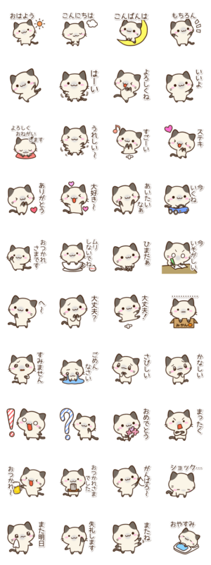 小さいシャムネコの、かわいいスタンプです。基本的な言葉や、毎日使えるあいさつや等、便利なスタンプです。しゃむねこ好きな方にぜひ。【かたこ】かたこ より発売