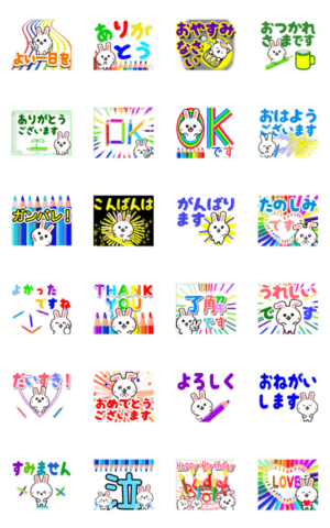 色鉛筆の動きが素敵なスタンプです。ウサギのキャラクターも癒されますね。