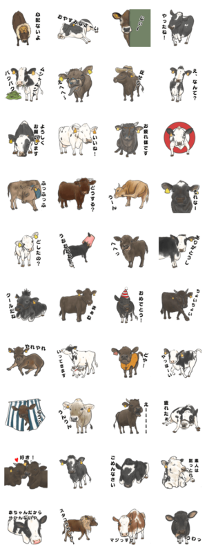 色んな牛飼いさん家の可愛い牛さんのスタンプsukamaru より発売
