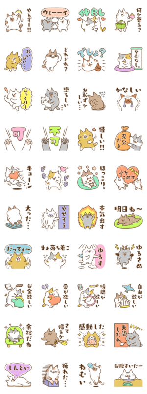 ゆるっとだらっとのんびりと。ちょっといい加減でマイペースな猫たちの、気楽に使えるスタンプです。ういむい より発売