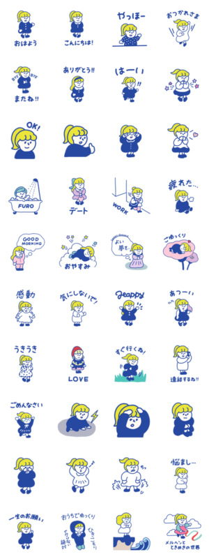 お洒落で可愛い、使いやすいスタンプ。カラーが絶妙!ポップな女の子が可愛くていっぱい使いたくなる。