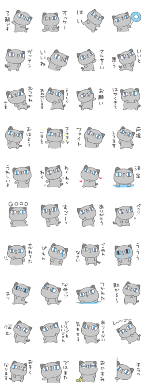 ネコのねこめねこが新登場。「いいね」「さんせーい」から「おやすみ」まで。ねこめねこで陽気にメッセージを届けよう。家族、学校、お仕事でも。Mami / エストループ より発売