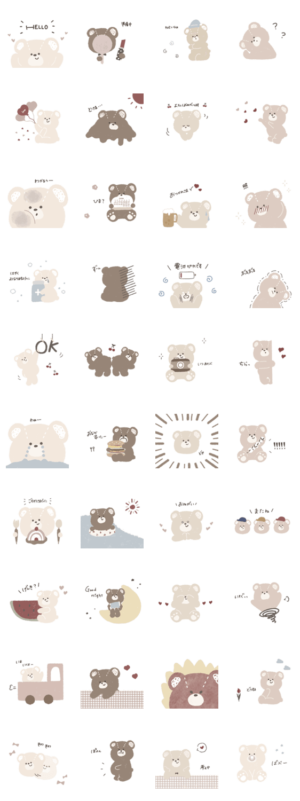 ゆるくて可愛らしいくまさんスタンプです。和やかなトーク画面になりそうですね。