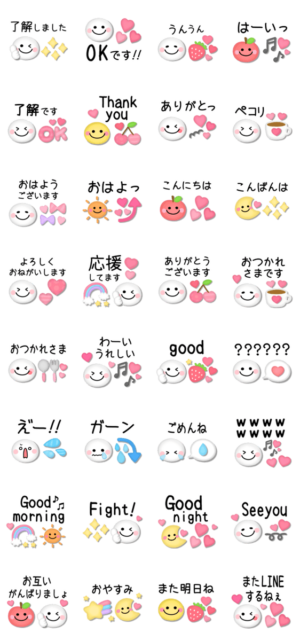 気持ちが伝わるハート多めでプックリ可愛い♡みんなが使える無難なスマイル日常会話セットです。