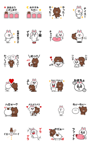 LINEキャラクターズのブラウン、コニー、ムーンが登場する、毎日使えるて便利な日常会話系の挨拶スタンプです。カップルで使ってもおもしろいです。 ※BROWN & FRIENDS をみんなでつくろう!キャンペーン参加スタンプです4A-Studio(よんえーすたじお) より発売