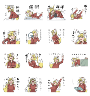 ゆる~い感じのきつね娘のスタンプ。名前にも絵柄にもメッセージにも若干の癖はあるが、好きな人は好きになれるだろう出来。