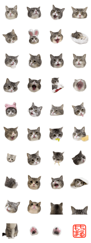 人気のyoutuber猫もちまるの見せる色々な表情をスタンプにしたもので、非常にかわいらしいスタンプだと思います。
