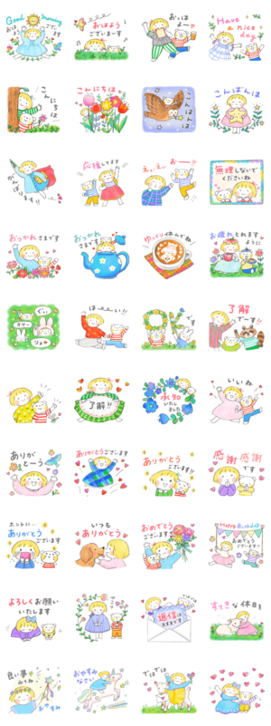 仲良しともだちシリーズ「はるちゃんとふうくん」の毎日使える挨拶スタンプです。日常に便利なフレーズばかりで敬語も多めです♪一年通してお楽しみください。