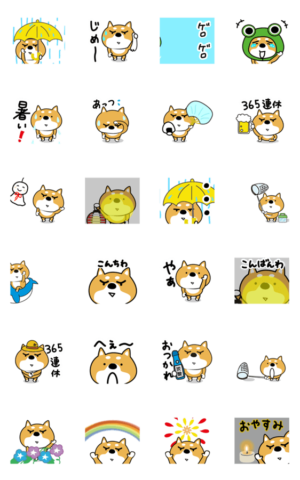 日常使いのスタンプ。ど〜〜〜〜〜〜ん。チワワじゃないよ。柴犬だよ。柴犬の柴蔵(しばぞう)。梅雨。夏はもうすぐ。