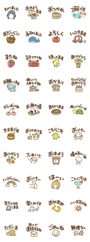 イラストや文字が温かみがあって可愛らしいスタンプですね。シンプルだからこその使いやすさがあります。