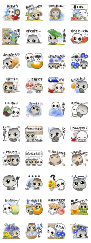 夏に楽しく使える はっぴーふくろう のスタンプです。ぽてこ より発売