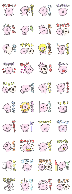 シュールなミニぶたの見やすいデカ文字スタンプです。eribo より発売