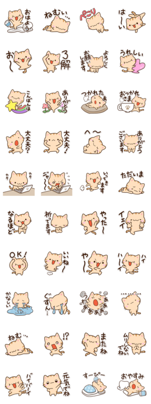とっても明るいネコちゃんに元気を貰えるスタンプです。毎日楽しくなりそうですね。
