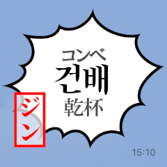 ジンさん専用名前スタンプです。日常会話に使える韓国語と日本語(+カタカナ)を吹き出しに入れました。シンプル/あいさつ/挨拶/面白い/プレゼント/おすすめ/お礼Toda より発売