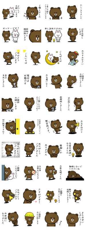ブラウン&フレンズのいつでも.どこでも.一生使える.使いやすい.敬語.丁寧語スタンプ。学校.会社の先輩.先生.監督.コーチ.目上の人.お世話になってるヒトに☆ノンノノン作 ※BROWN & FRIENDS をみんなでつくろう!キャンペーン参加スタンプですノンノノン より発売