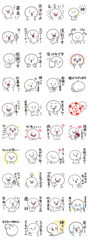まんまるくんが褒めてちやほやしてくれるスタンプです。セイコウ より発売