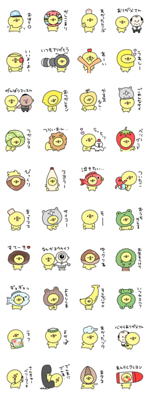 シュールなミニひよこのゆるいダジャレスタンプです。eribo より発売