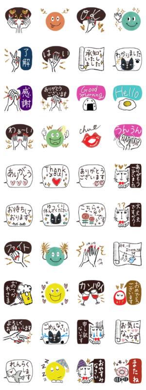 オシャレで可愛いイラストで女子受け高いスタンプ♪オシャレイラスト/ハンド/手/ニコちゃん/クレヨン/挨拶/敬語/大人女子/アート/ゆる/手描き/ Bnasuko