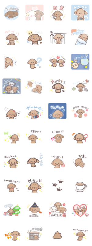 LINEスタンプメーカーでつくった犬のスタンプです。TIKI より発売