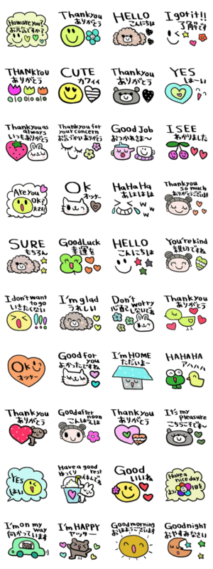 シンプルな日常会話スタンプです。日本語&英語スタンプ