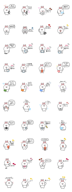 1つあると便利なコニースタンプ。シンプル/かわいい/大人可愛い/毎日使える/あいさつ/うさぎ/連絡/家族/恋人/友達 ※BROWN & FRIENDS をみんなでつくろう!キャンペーン参加スタンプですhitonatsu より発売