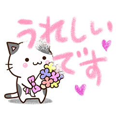 くろぶちネコの色鉛筆で描いたやさしい雰囲気のスタンプです。「おはよう」から「おつかれ」「おやすみ」等を含めた毎日使える猫スタンプ。ブチねこ好きな方へ。【かたこ】かたこ より発売