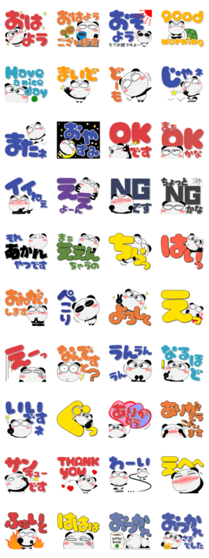 ポップでカラフル。文字サイズが最大級。毎日よく使う言葉、敬語がそろっています。文字が大きくて見やすい!使いやすい!わかりやすい!の3拍子揃ったスタンプ。パンダ。urajo より発売