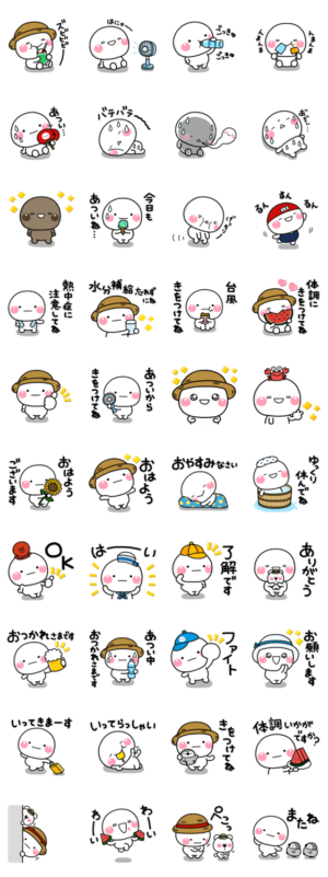 しろまるの毎年夏に使えるスタンプです。使用頻度が高い基本スタンプも含まれておりスタンプ初心者の方にもオススメです。【作:いしいともこ】