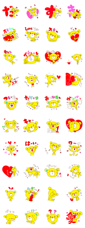 黄色いクマちゃんのLoveキュン!可愛いスタンプです♪甘えんぼな性格のLove Bearを楽しんでね☆りんくちゃん より発売