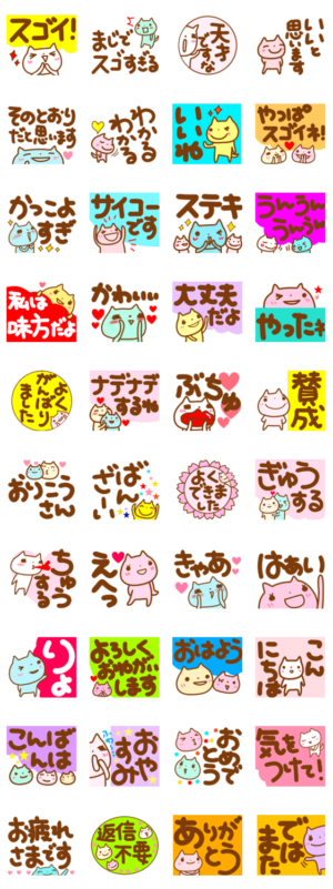 『デカ文字』とにかく褒めるネコスタンプ スタンプ情報