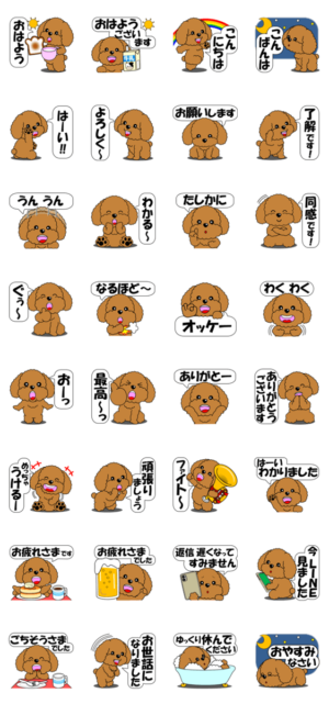 トイプードルの日常挨拶スタンプセットです。敬語も豊富です。ヒサケイプリン より発売