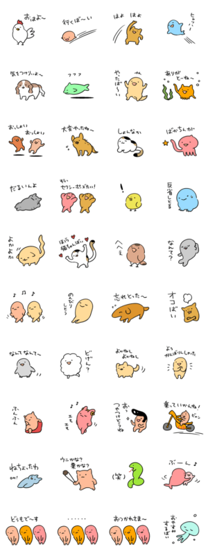博多弁のゆるい動物スタンプです。pecorakko より発売